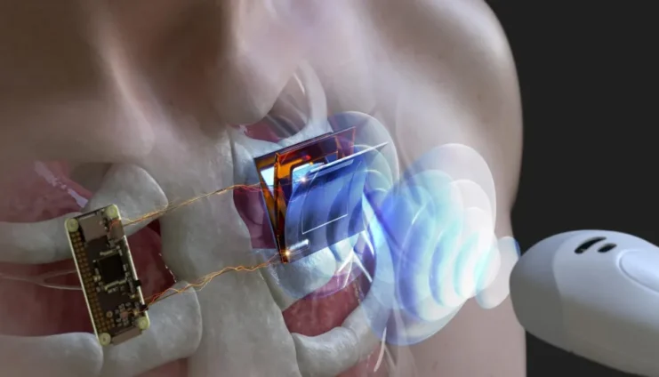 Korejas zinātnieku komanda ir izstrādājusi liektu virsmu pielāgotu, elastīgu ultraskaņas enerģijas uztvērēju, kas efektīvi darbojas arī uz nelīdzenām un kustīgām virsmām. Ierīce ir veidota no pjezoelektriskiem materiāliem, kas pārvērš skaņas viļņu radīto spiedienu elektroenerģijā. Šādu uztvērēju var piestiprināt tieši pie ādas vai integrēt zem ādas ievietojamos medicīniskos implantos.